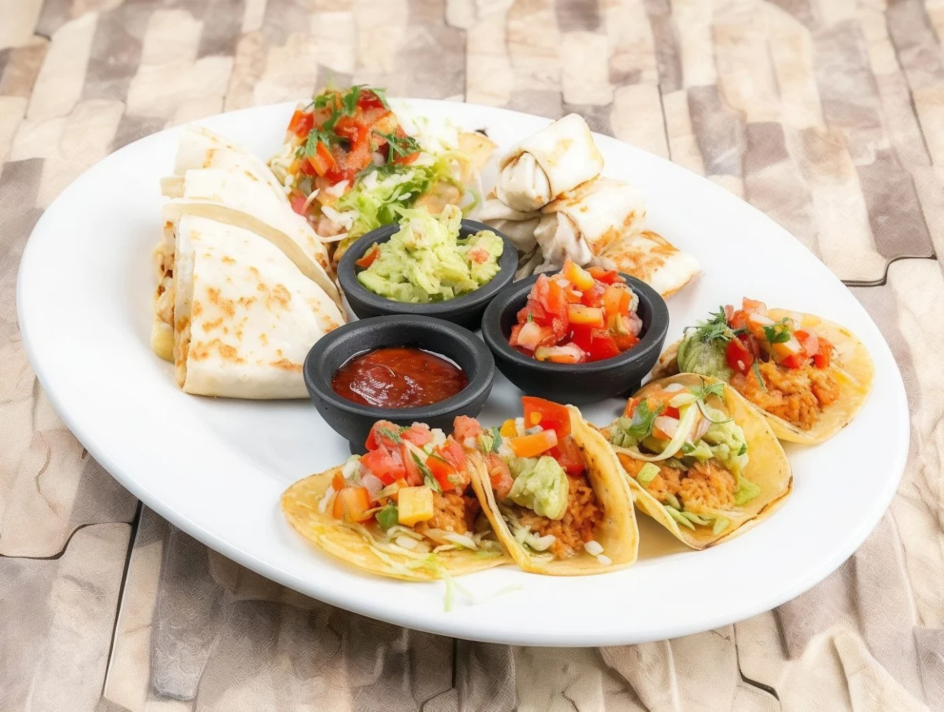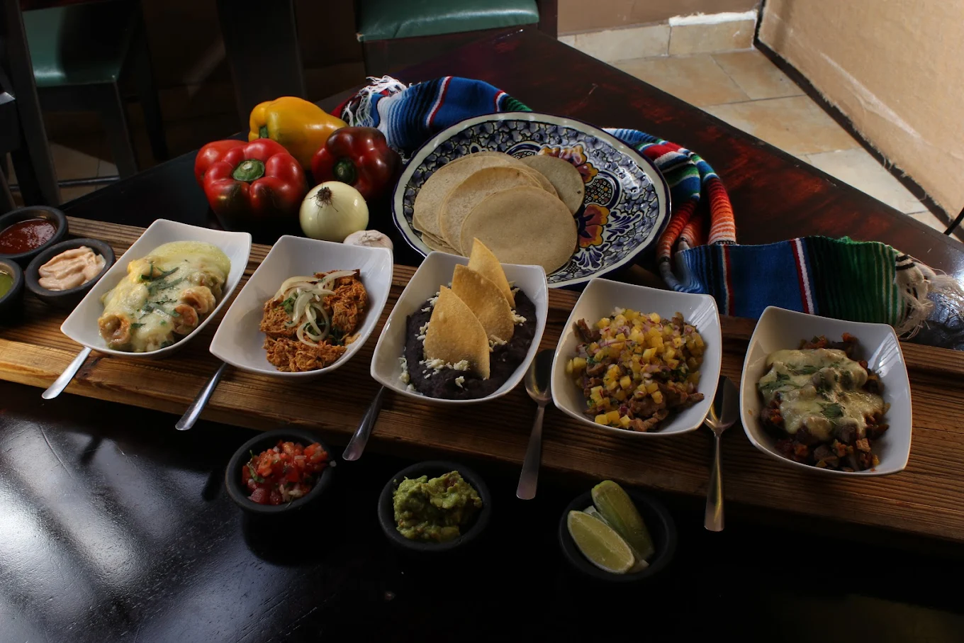 La carta ofrece una gran variedad de platos tradicionales mexicanos, incluyendo sus famosas Fajitas, Tacos (Al Pastor, Cochinita Pibil, Tinga), Asado al Molcajete y sus clásicas Margaritas. El menú está bien diseñado para ofrecer opciones tanto para comidas rápidas como para cenas más elaboradas.