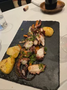 El ambiente de Casa Alejandro es tan acogedor como su nombre lo sugiere. Con una decoración que evoca una casa tradicional española, el lugar crea un entorno cálido e íntimo, ideal para una cena relajada o una celebración especial. El servicio atento y la atmósfera familiar hacen que cada visita se sienta como una bienvenida a casa. Además de su excelente comida, el restaurante cuenta con una cuidada selección de vinos españoles y una carta de postres que complementan la experiencia a la perfección.