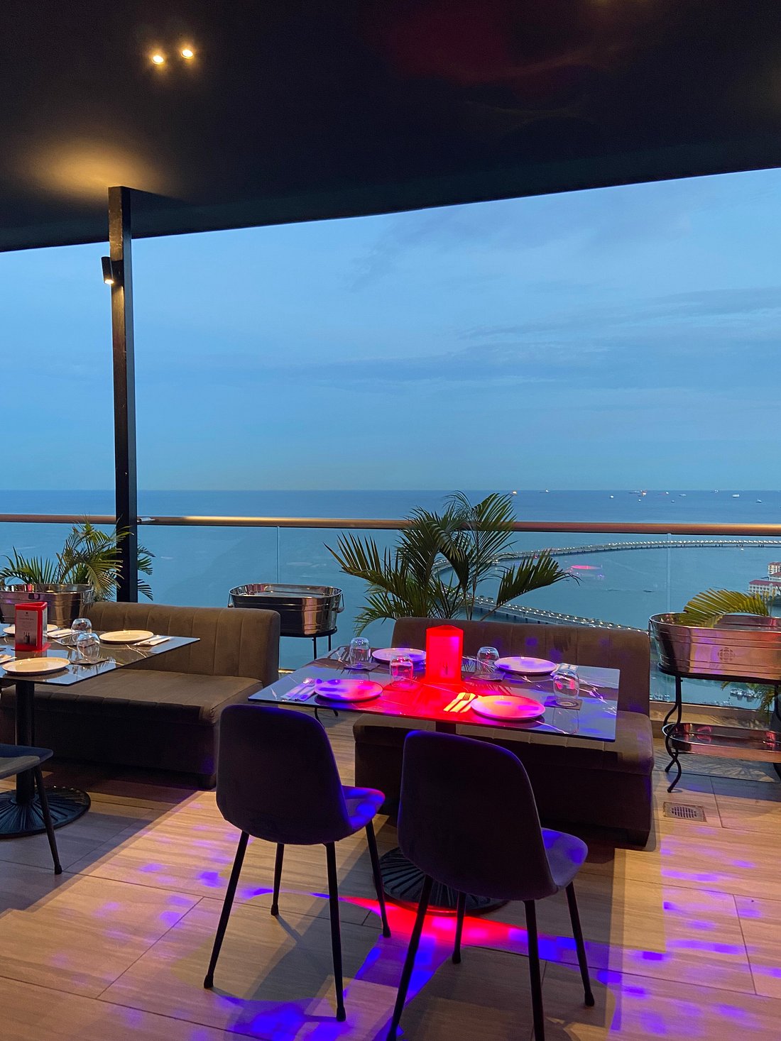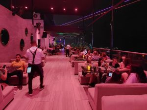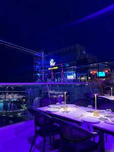 Su principal atractivo es su impresionante terraza al aire libre, que brinda vistas panorámicas espectaculares del skyline de la ciudad, el mar y los edificios circundantes. Es el lugar ideal para un after office, una cita romántica o una reunión con amigos, gracias a su iluminación tenue, música cuidadosamente seleccionada (a menudo con DJ o música en vivo) y un ambiente vibrante.