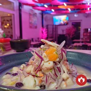 Bajo la batuta del Chef Masaki Uyema, cada plato es una obra de arte que honra la historia culinaria de ambas naciones. La carta deslumbra con opciones frescas y creativas: desde sofisticados ceviches con leche de tigre de coco y sorbete de mango, hasta innovadores tiraditos de pulpo al olivo y una extensa selección de sushi rolls únicos, como el famoso Acevichado. No faltan los clásicos peruanos llevados al Nikkei, como el Lomo Saltado Enkai o el Chaufa de Mariscos.