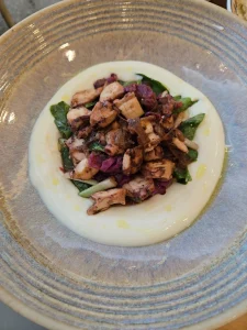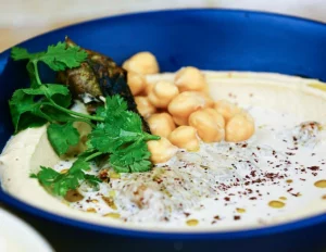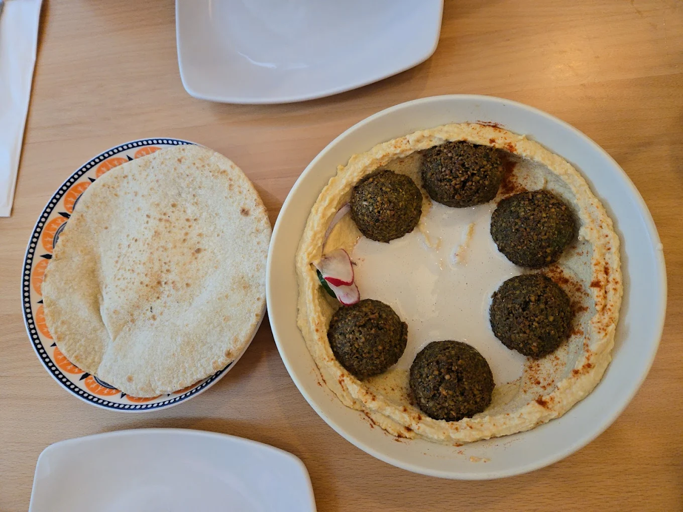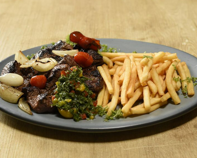 El restaurante es un destino popular para comidas rápidas y cenas informales, destacando su excelente selección de entrantes como el Hummus, Falafel y Coliflor frita. Para platos más robustos, ofrecen carnes de alta calidad Black Angus (Ribeye, Entraña), Kebab y pizzas. Un fuerte valor añadido es la variedad de opciones para dietas especiales, incluyendo platos vegetarianos fáciles de identificar.