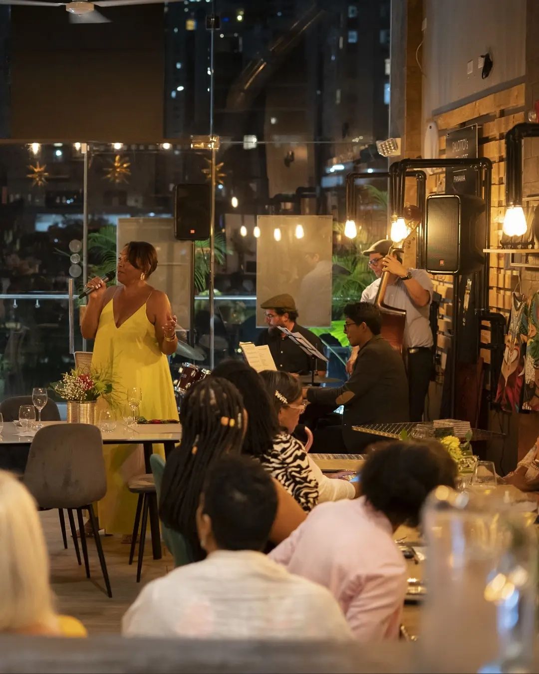 El ambiente es su punto fuerte, promoviendo una "experiencia Salotto" ideal para reuniones familiares, celebraciones o citas de negocios. El restaurante destaca por su programación cultural, ofreciendo música en vivo varios días a la semana (Jazz, Bolero, Bossa Nova), y ocasionalmente, teatro mientras se cena.