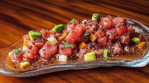 El menú se centra en cortes premium (como el Ribeye, Picaña y Hanger Steak) y pescados frescos, complementados con platos de autor que incorporan técnicas e ingredientes globales, como el Spicy Tuna Crispi y el Chaufa de Pato. Ofrecen además un atractivo "Lunch Carnívoro" a mediodía, haciéndolo ideal para almuerzos ejecutivos.